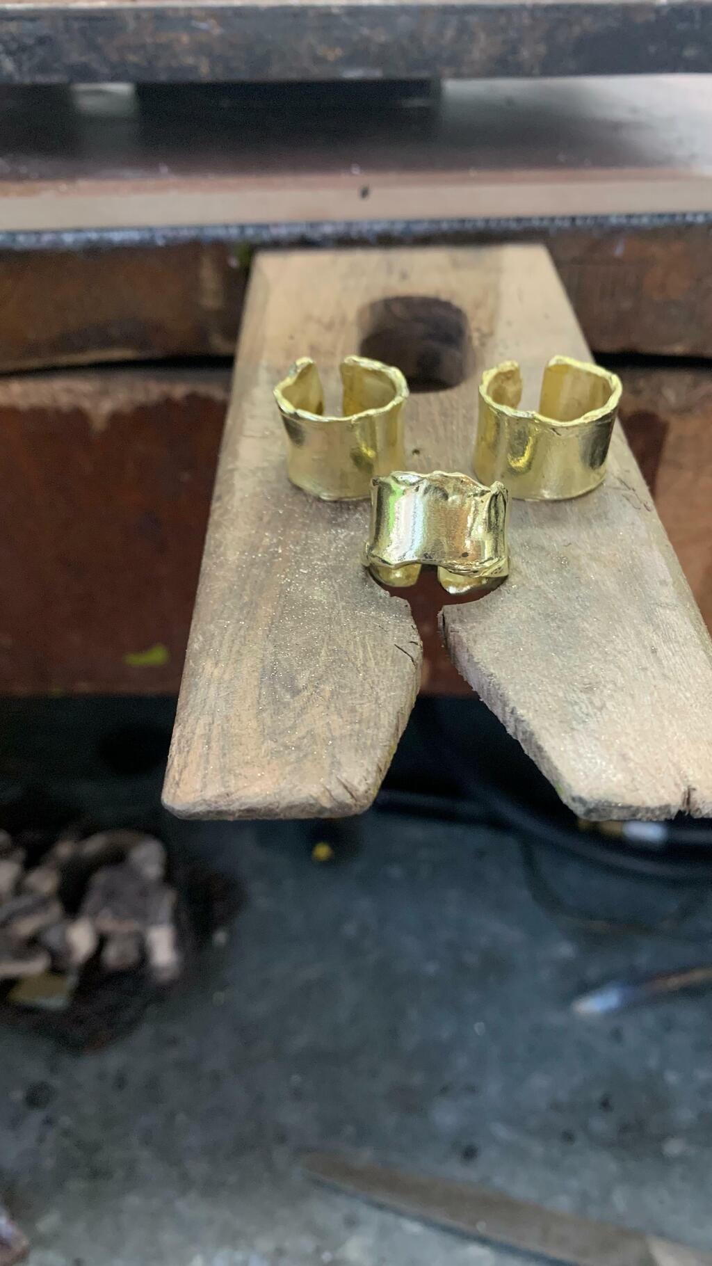 Anillo regulable en alpaca o bronce. Estos anillos son piezas hechas con una tecnica de derretido con fuego, por lo tanto todas las piezas van a ser distintas e unicas, ya que es poco controlable como reacciona el metal a tanto calor. Las piezas son realizados de manera artesanal, pueden tardar hasta 10 dias habiles en realizarse.