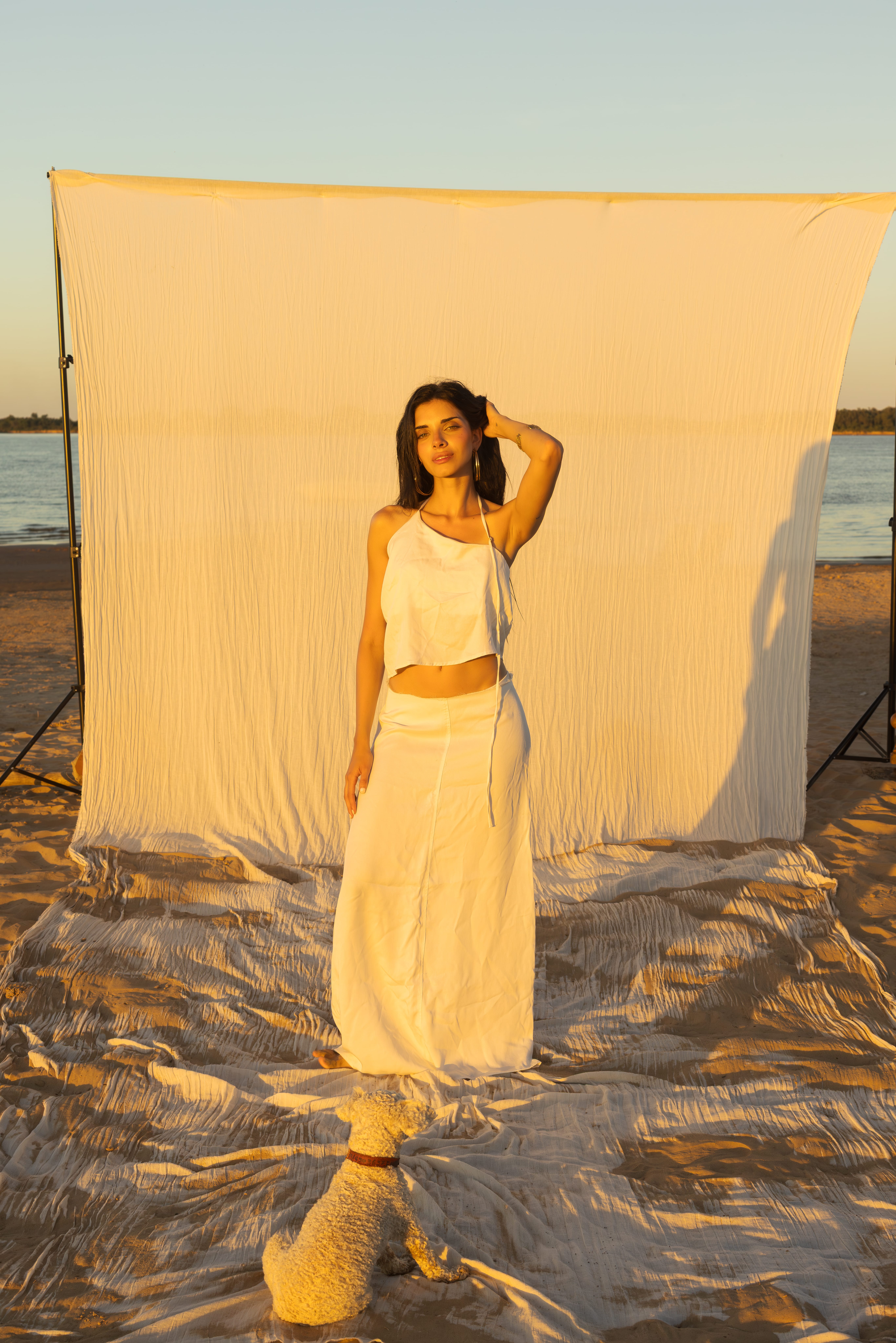COLORES DISPONIBLES:La Blusa Dual está diseñada para adaptarse a tu estilo y a cada ocasión. Cuenta con breteles regulables con avíos de ZAMAC, que permiten ajustar el escote y definir cuánto querés mostrar de la zona del abdomen. Incluye una vista interna pensada para usarla cómodamente sin corpiño, manteniendo la estructura de la prenda y destacando el drapeado de la espalda y el diseño de los breteles. Disponible en marrón y blanco, es una pieza versátil, elegante y perfecta para elevar cualquier look. Combinada con la Pollera Dual, forma el set completo, que ya incluye un 10% de descuento aplicado en el precio final. Link del producto en la web: https://deonticshop.com/product/blusa-dual/