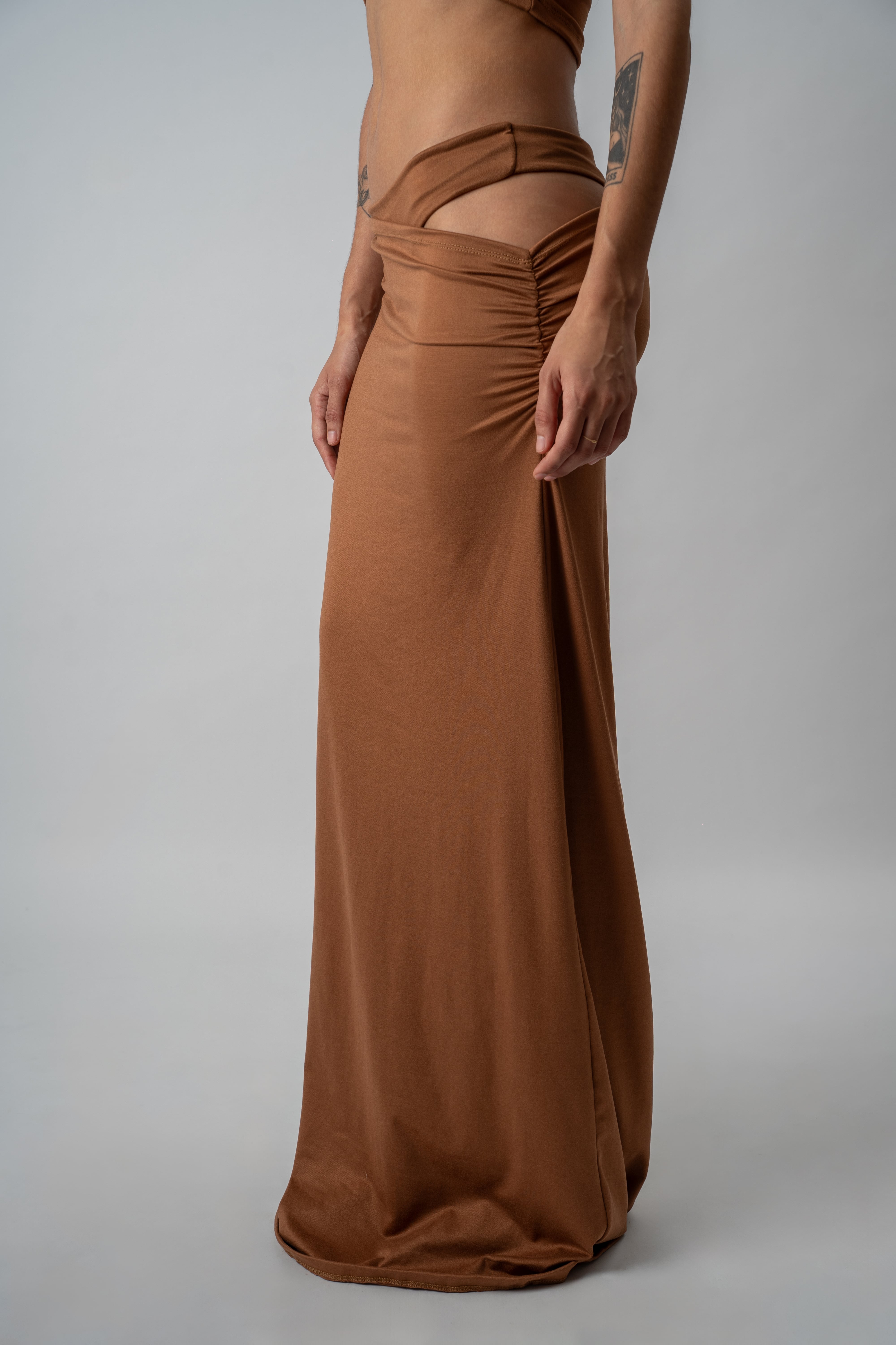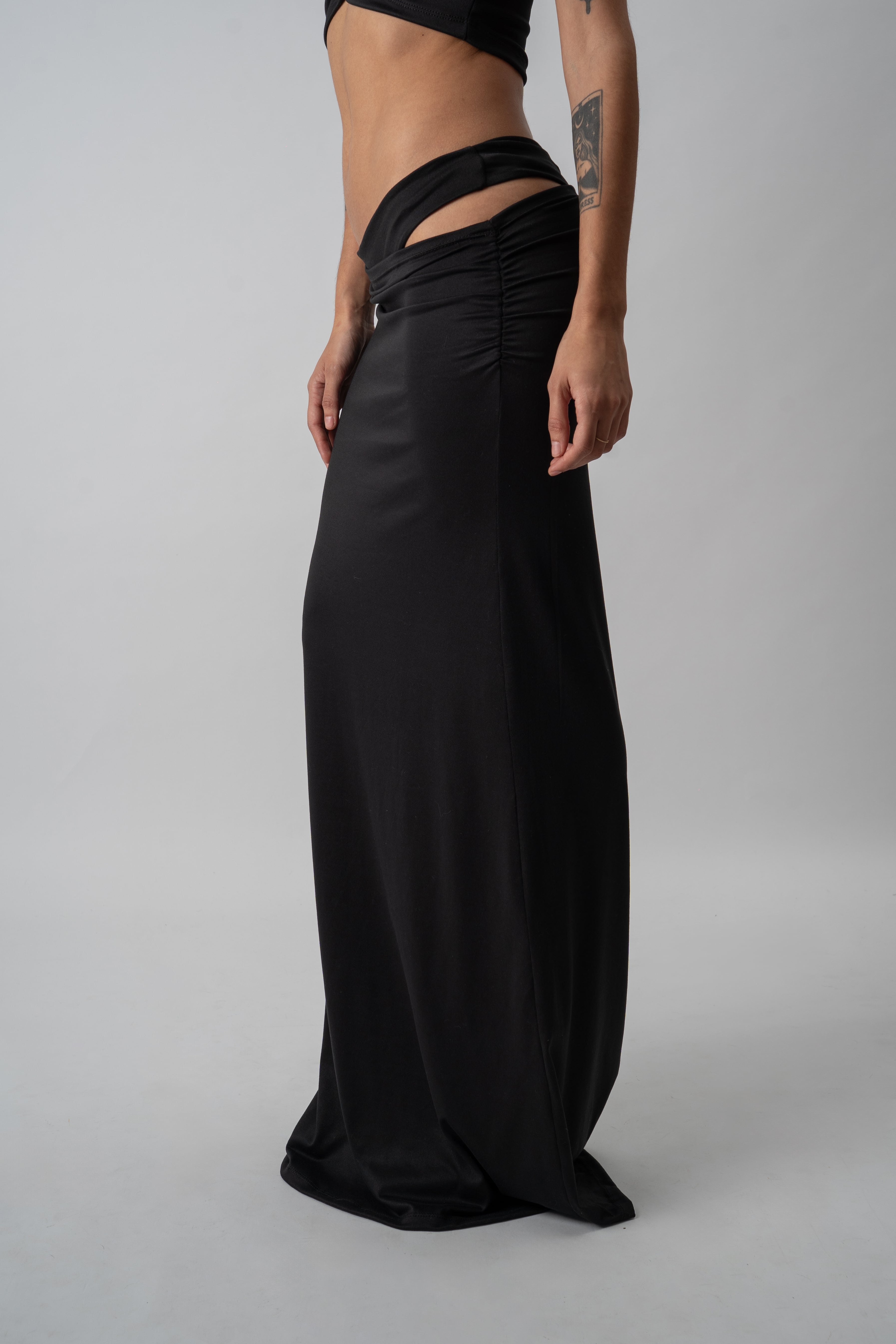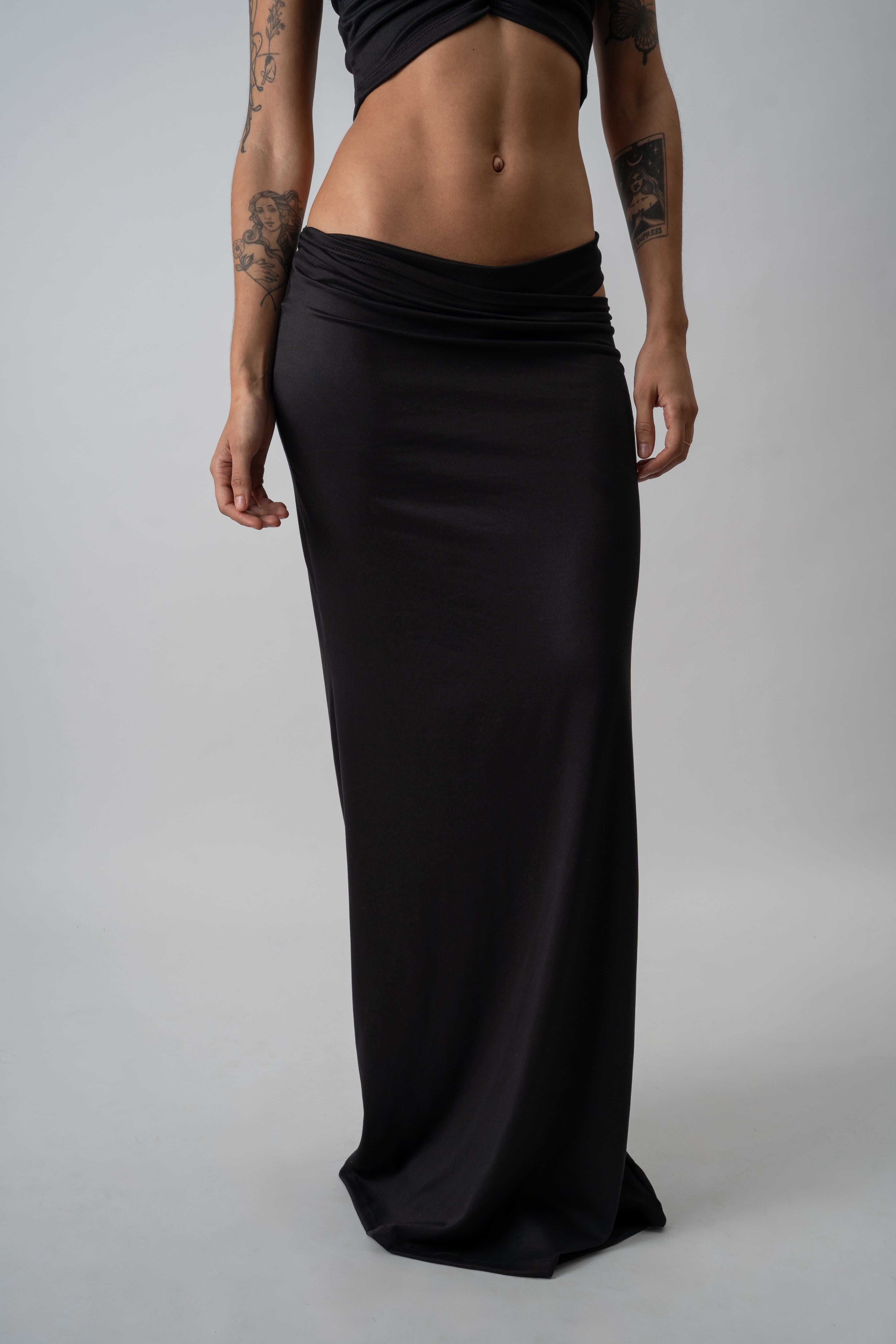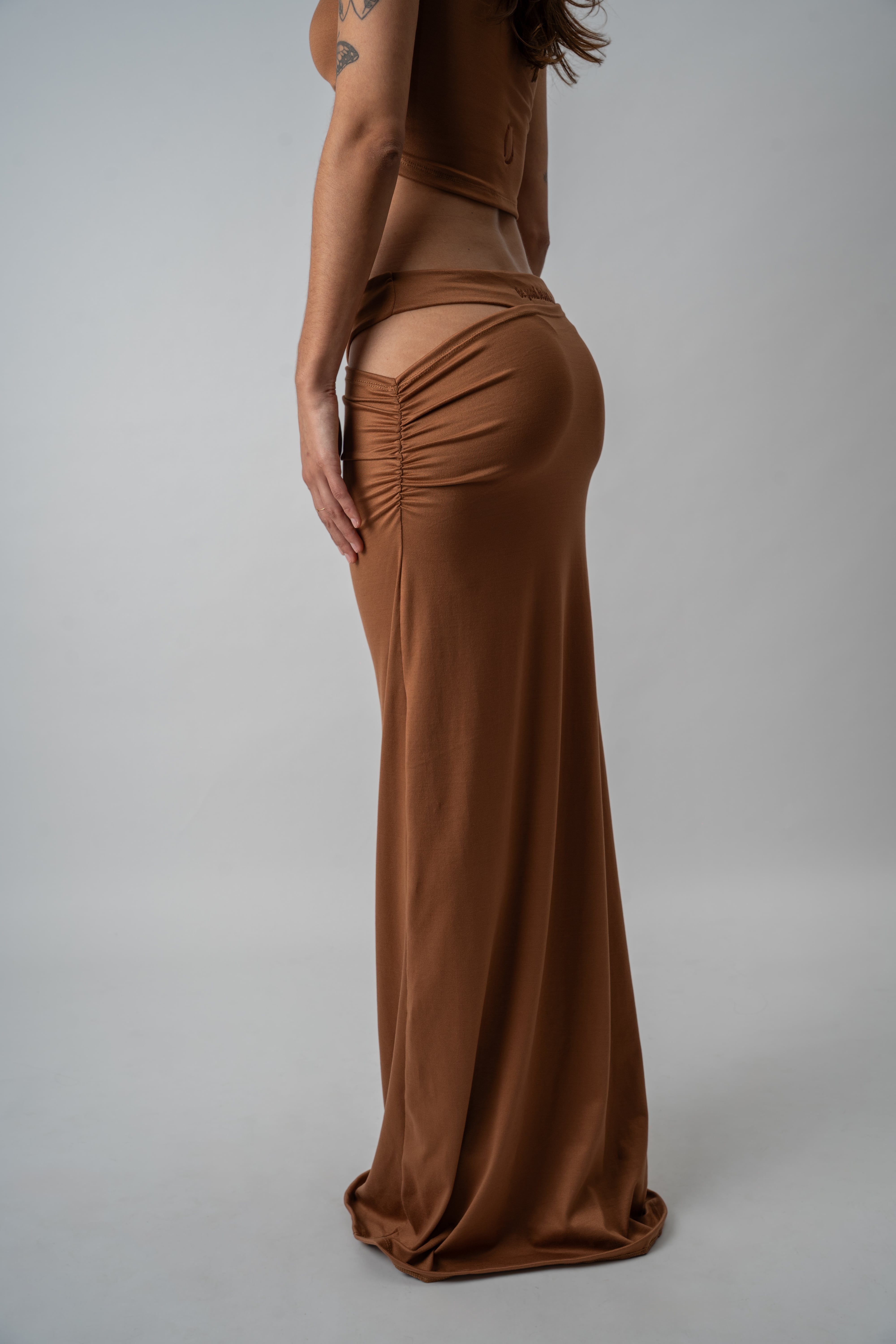 COLORES DISPONIBLES:Falda larga confeccionada en modal-soft, con una caída fluida y movimiento natural que acompaña la silueta. Su diseño presenta un frunce lateral que aporta un ajuste y calce favorecedor, permitiendo modificar la altura y decidir cuánto querés dejar a la vista según tu estilo o el momento. El diferencial está en la simulación de ropa interior confeccionada en doble tela, que genera un efecto visual sutil y atractivo, fusionando comodidad con un guiño provocador. En la parte trasera, el bordado “Be good. Be bad. Just be.” a tono funciona como sello distintivo de la prenda. Link del producto en la web: https://deonticshop.com/product/pollera-glimpse/